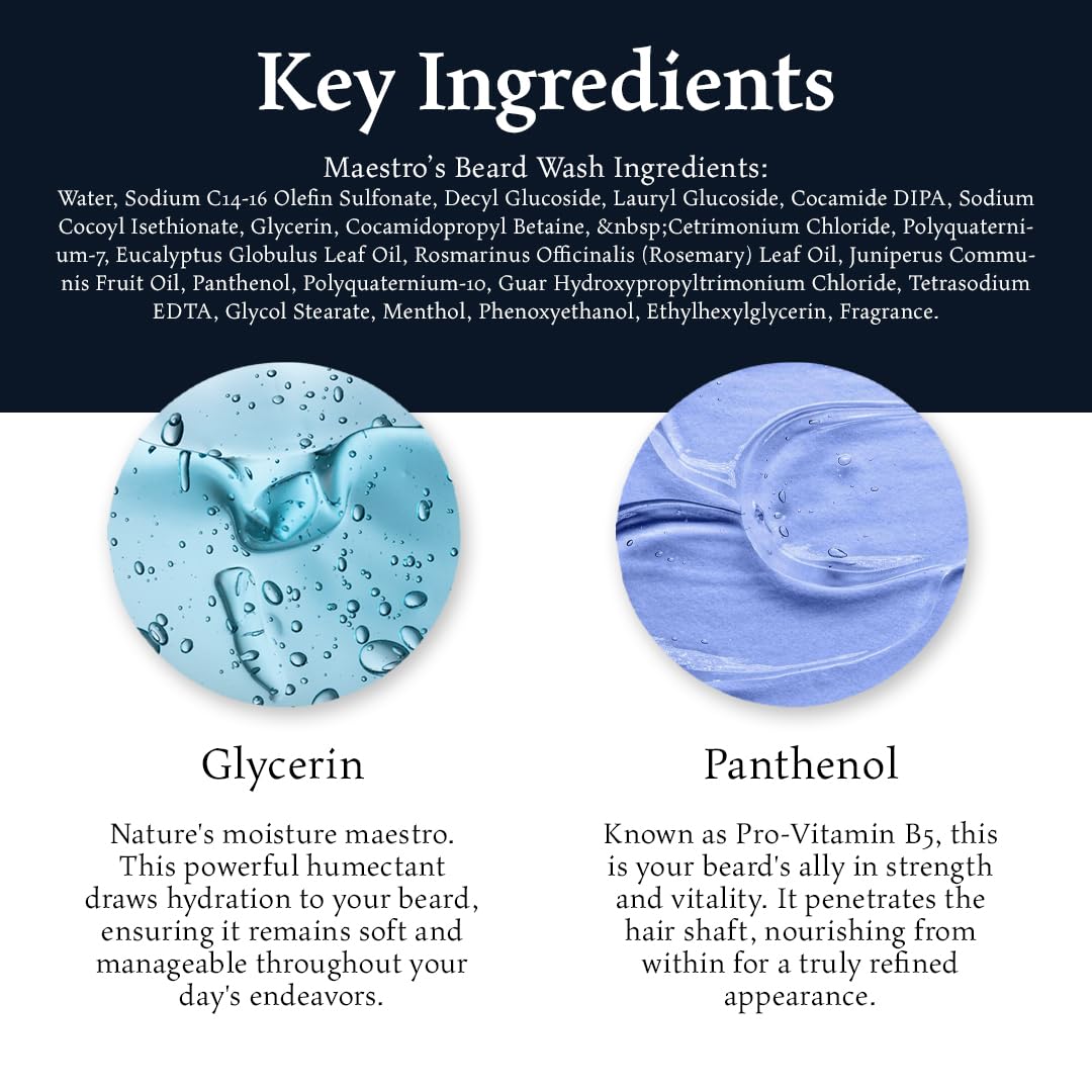 - HOW THE MAGIC HAPPENS: Since every Maestro is different the amount used will vary. In the sink or shower we recommend applying a nickel size amount of Maestro’s Classic Beard Wash and working it through your beard vigorously while enjoying the performance of the foaming action. Rinse your beard completely, towel dry, then look forward to Step 2 in Beard Care with Maestro’s Classic Beard Butter.