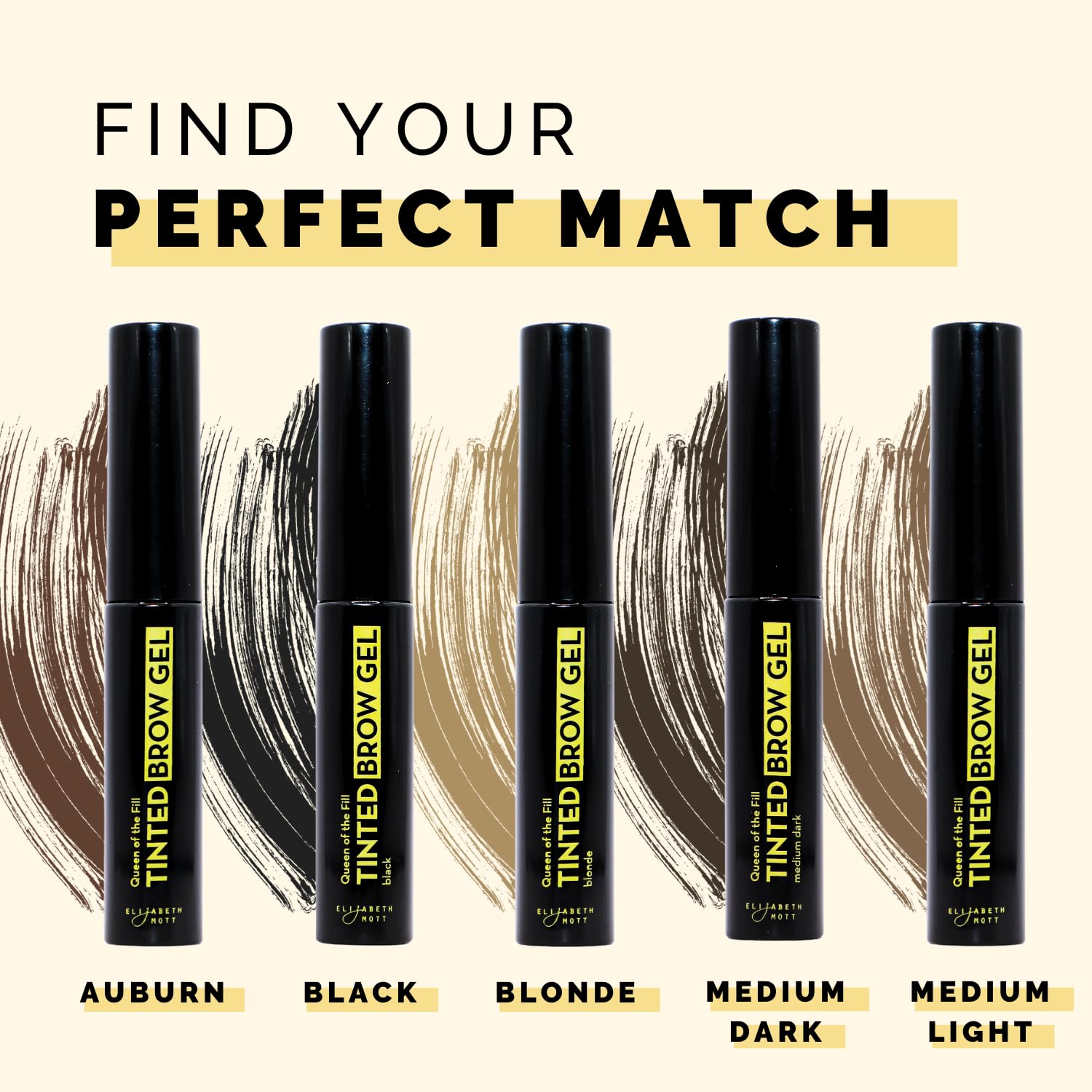 Elizabeth Mott Eyebrow Gel - Queen of the Fill Tinted Brow Filler, Volumizer & Setter - Defines, Shapes & Covers Grays - Water-Resistant, Long-Lasting, Smudge-Proof - Cruelty-Free, Black Shade, 4g
