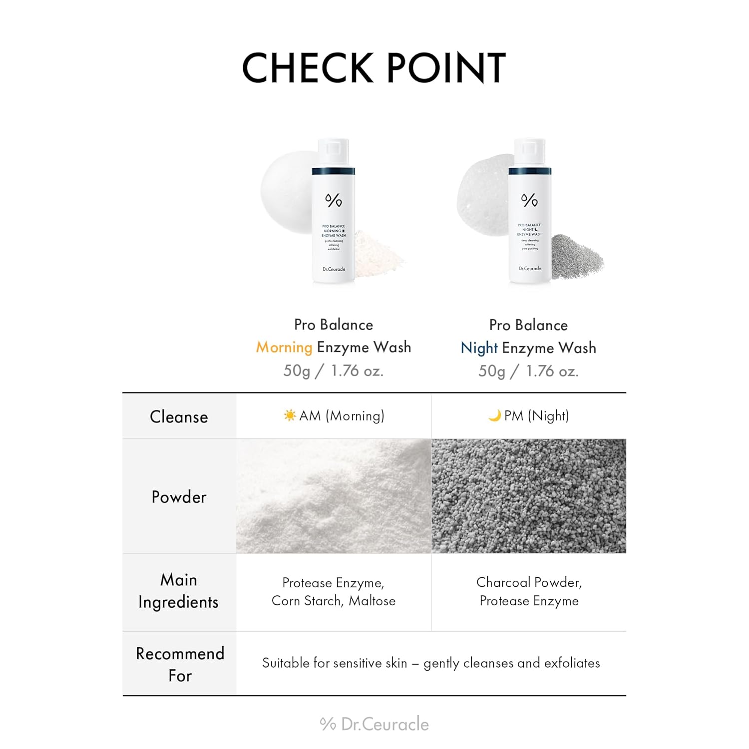 Dr.Ceuracle Pro Balance Enzyme Powder Face Wash - Korean Day and Night Natural Enzyme Powder Face Wash for Deep Pore Cleansing, Sebum Removing, pH Skin Balancing Care (Night Wash)