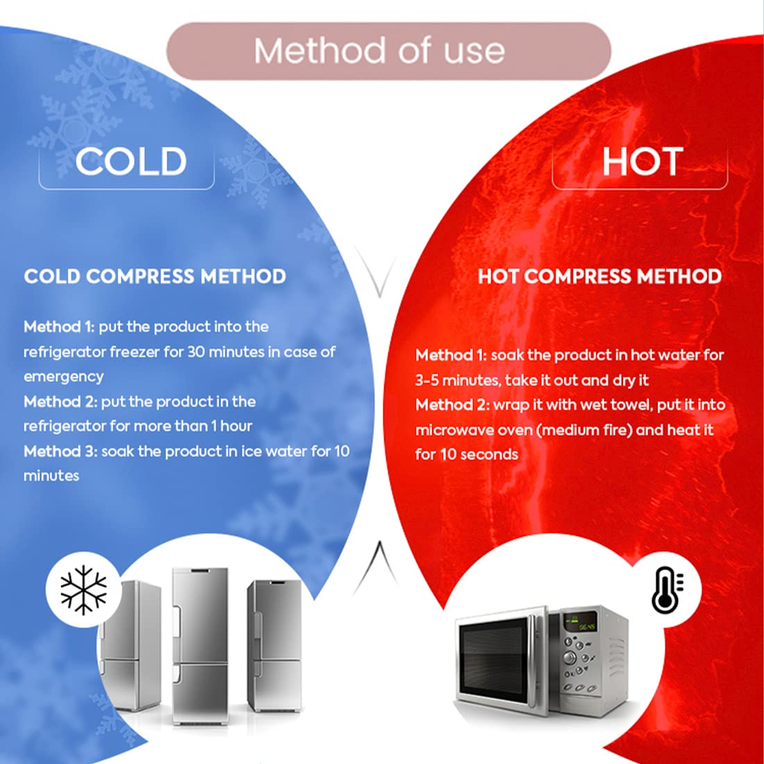 - 👀【HOW TO USE】 - Heat in microwave or hot water for 10 seconds for heat therapy; Chill in freezer for at least 2 hours for cold therapy, and let stand for a few minutes before use. Notice: Do not use on the same part for longer than 20 minutes.Lie down when using the ice pack to avoid falling off.