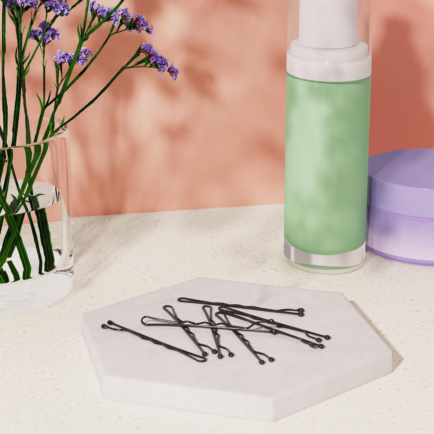 Amazon Basics Bobby Pins, Black Hair Pins for all Hair types, 48 Count
