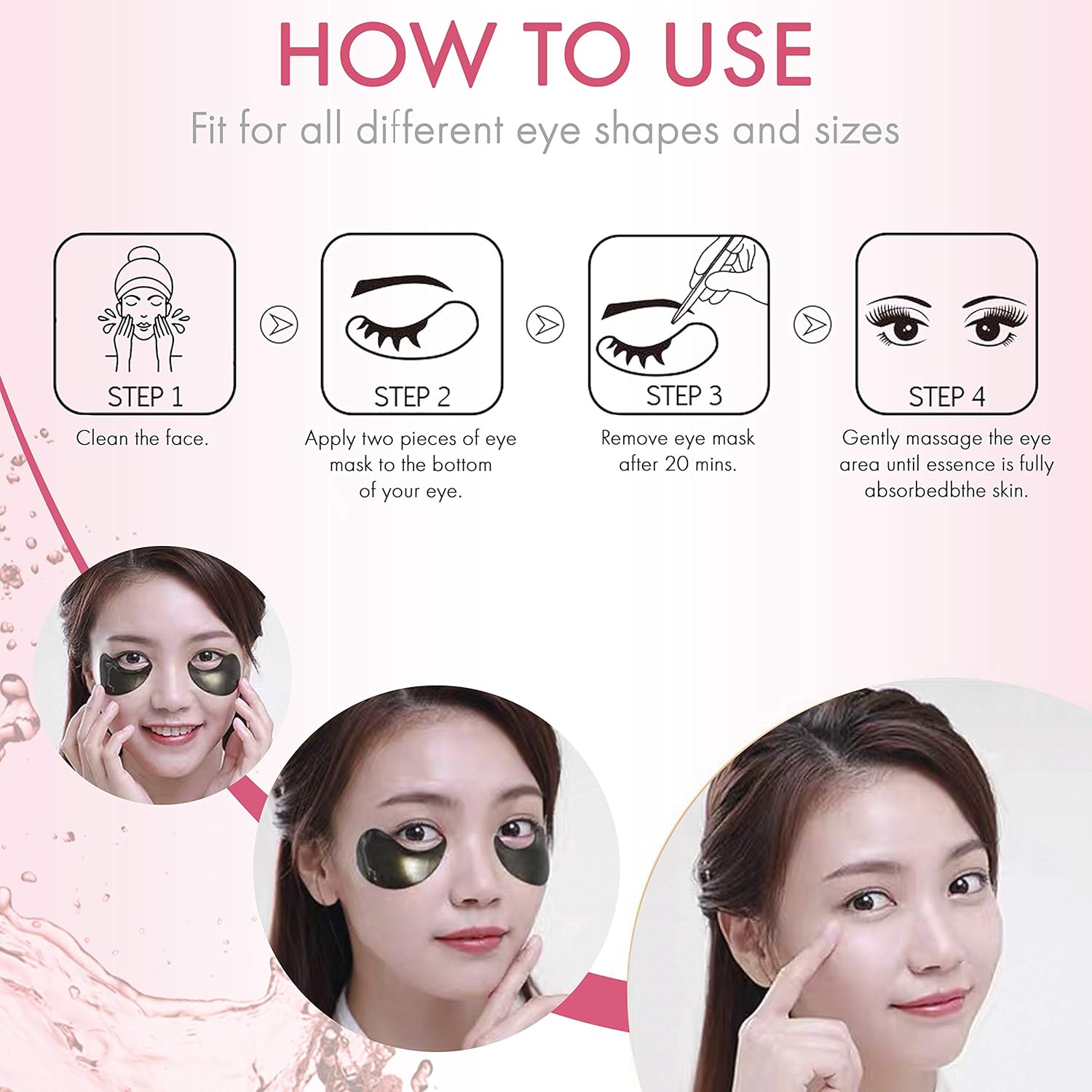 Korean Under Eye Patches 24K Gold Black Pearl Mask Anti-Aging Hyaluronic Acid Collagen Neck Forehead Laugh Line Pad Reducing Dark Circles Treatment (60pcs, gold patches 60pcs)