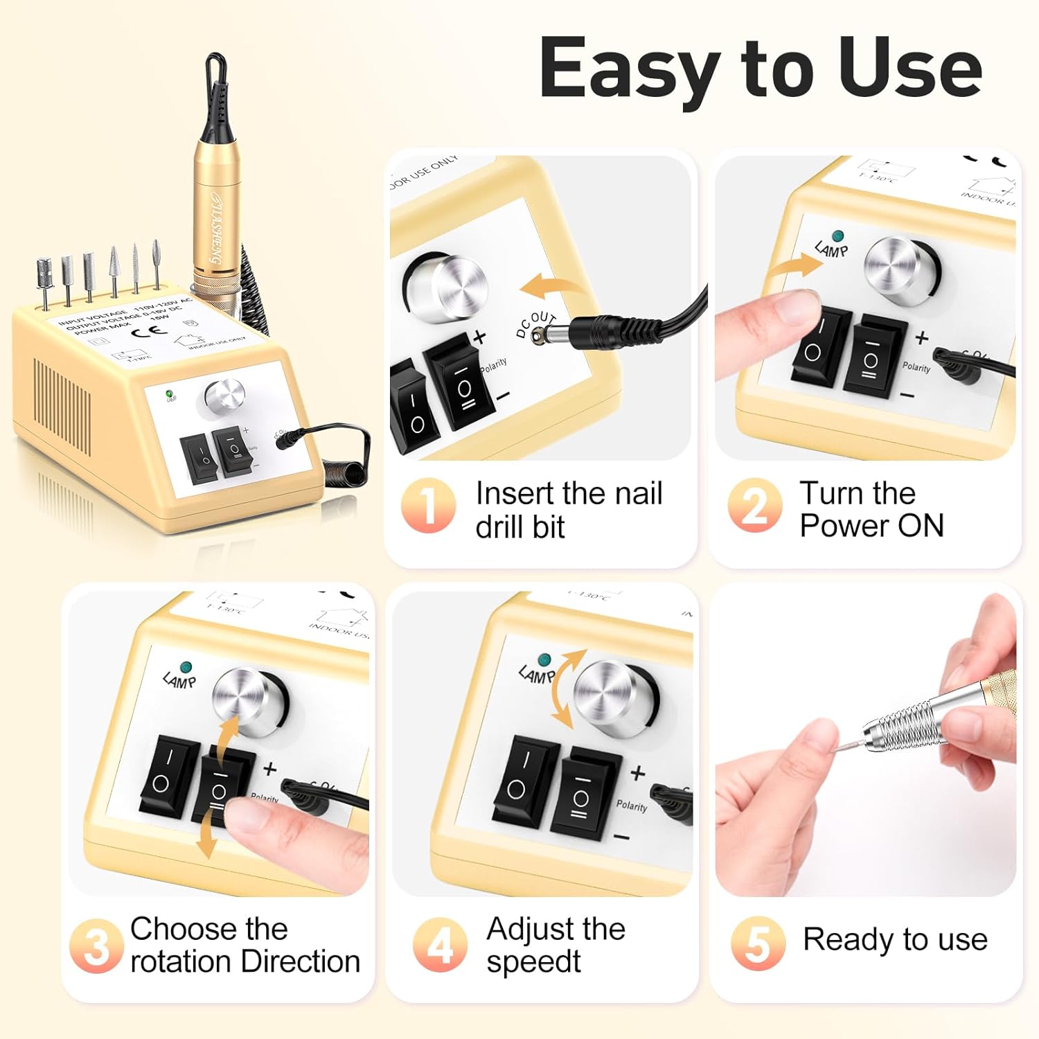 - Multifunctional Use Electric Nail Drill: Designed with a high-quality aluminum alloy handpiece, it is lightweight for steady operation. Used for for manicure, pedicure, polishing, shaping etc. It is ideal for both professional use in salon and beginner at home