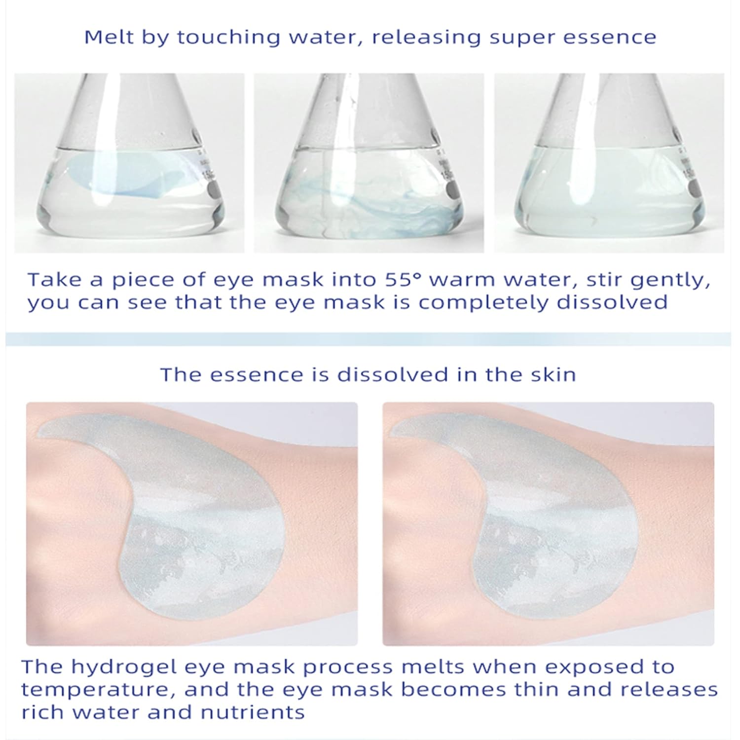 - Easy To Use: Clean your face and eyes with warm water, then put eye pads under your eyes and press gently to secure them. Keep it for 20 minutes, remove the eye pads and gently pat the remaining essence. Twice a day or at least once a week.