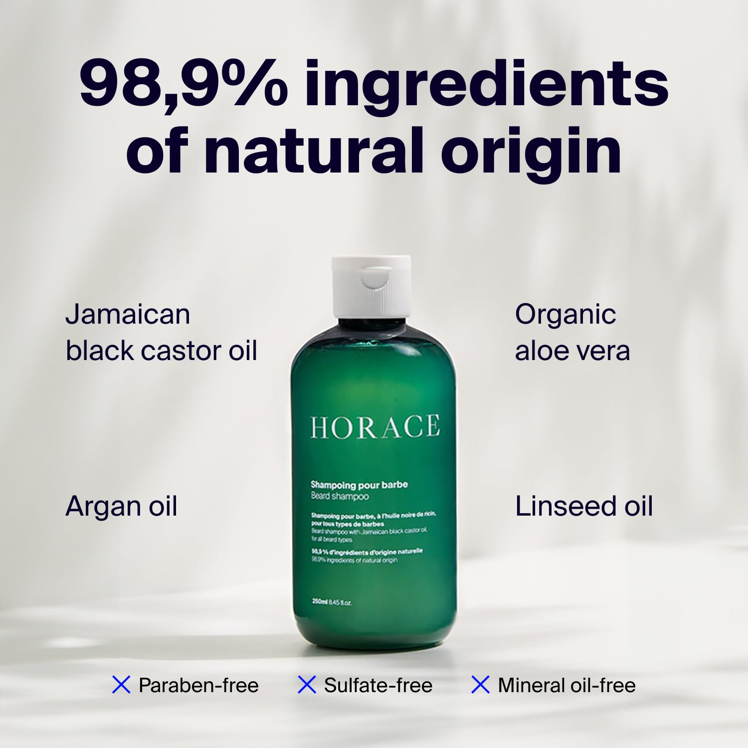 HORACE Beard Shampoo for Men - Sulphate-free Wash with Castor Oil - Gentle Beard Care for All Skin Types - Woody, Aromatic Scent, 250 ml