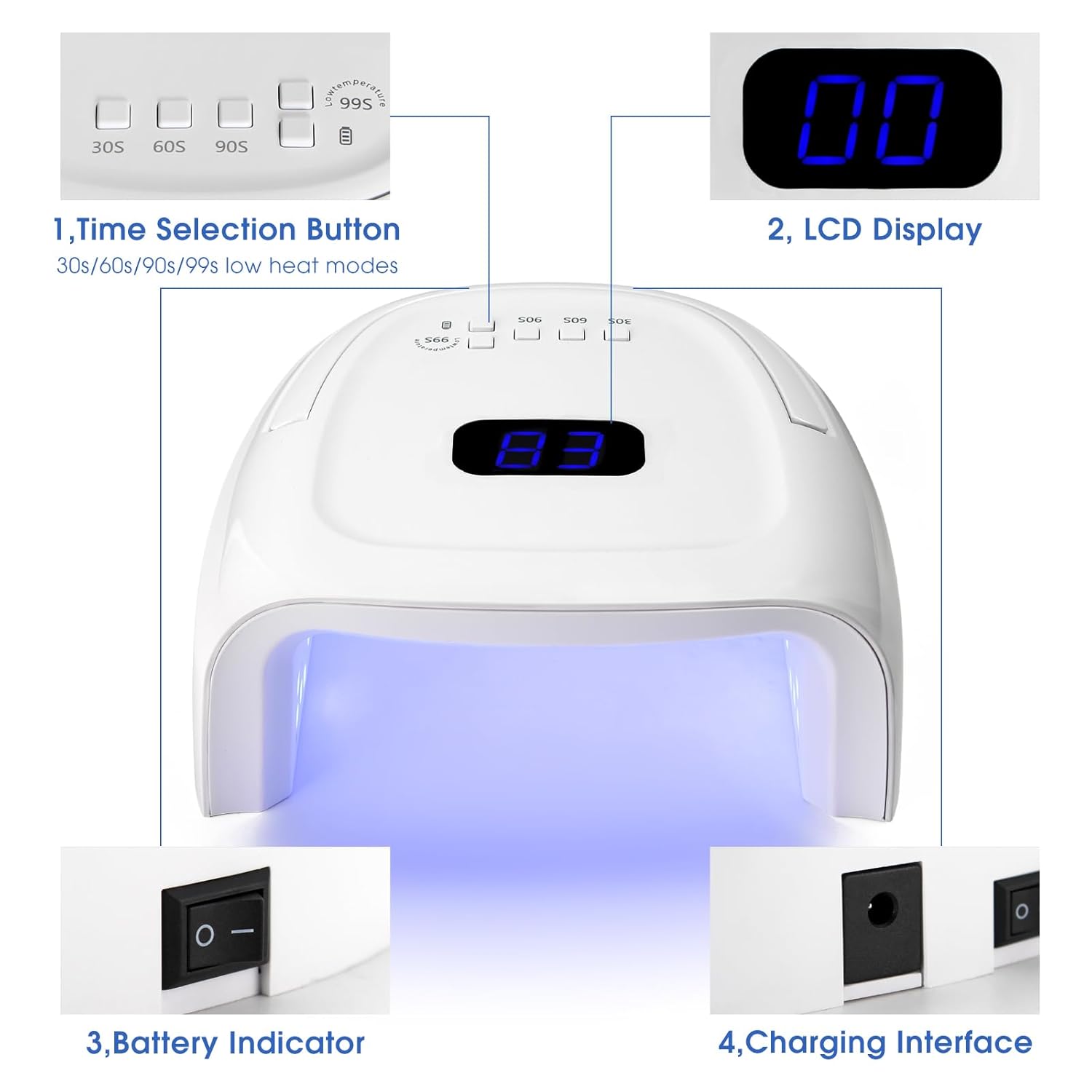 - Fast Dryer Wireless Nail Lamp: 60w led gel nail lamp with 42pcs UV/LED dual light source, 180° Led beads coverage inside. speeds up the drying process, making curing UV gel nail polish quickly and effectively