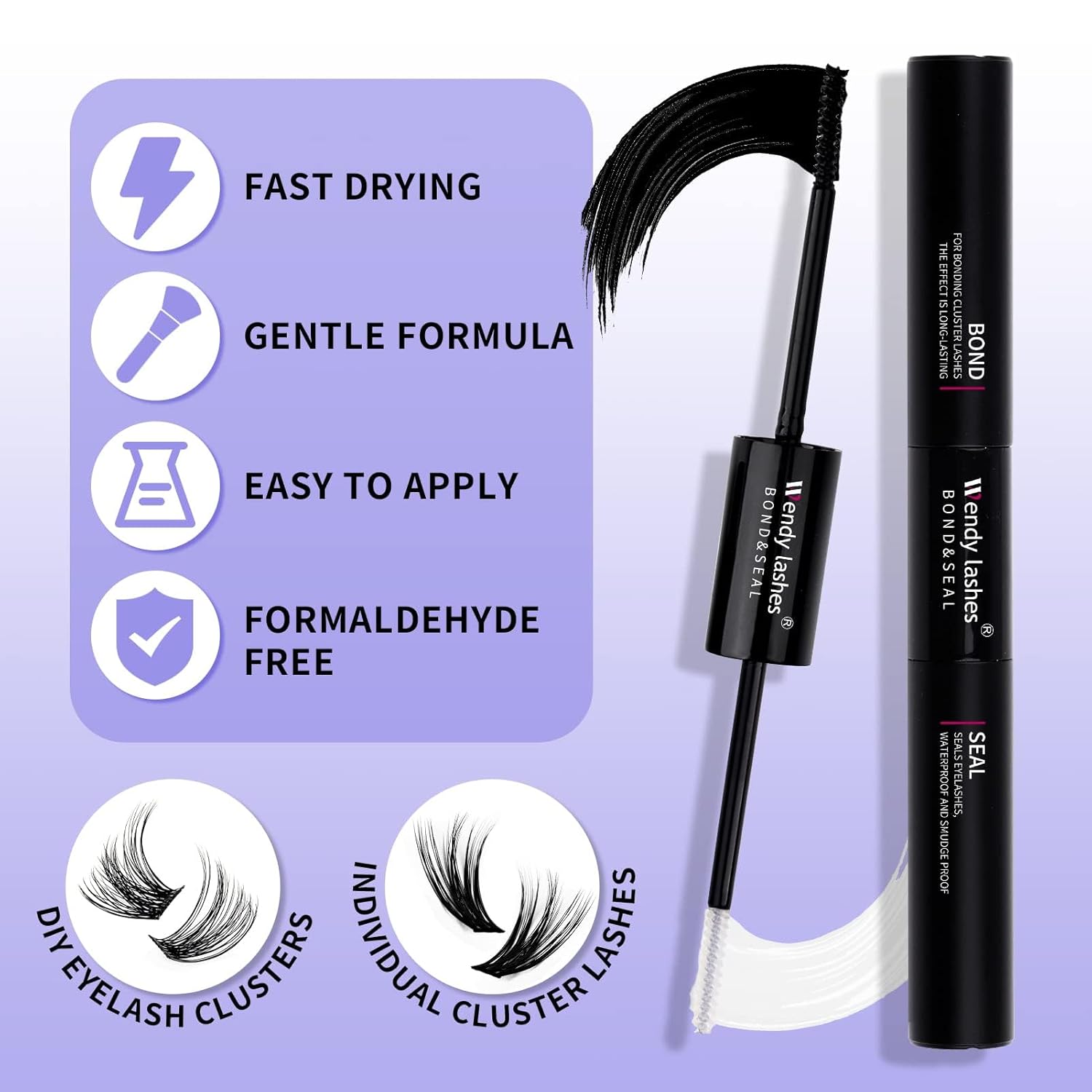 - Lash Clusters Kit: Including lash clusters, lash bond and seal, tweezers for cluster lashes, and eyelash clusters brush, provide all the tools you need to make your eyelash extension in just ten minutes.