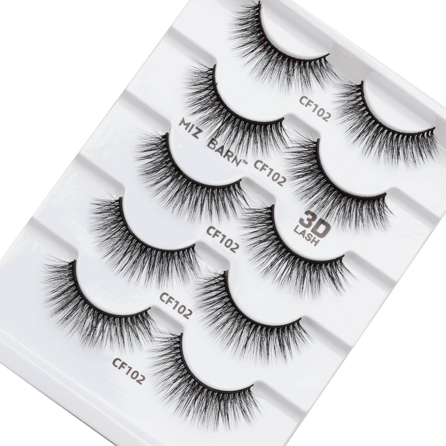 Miz Barn Lashes 5 Pairs Cat Eyes Wispy Lightweight Natural 3D Cashmere Soft Long Extension Eyelashes Pack Handmade Luxurious Volume Fluffy False Eyelashes (CF102)