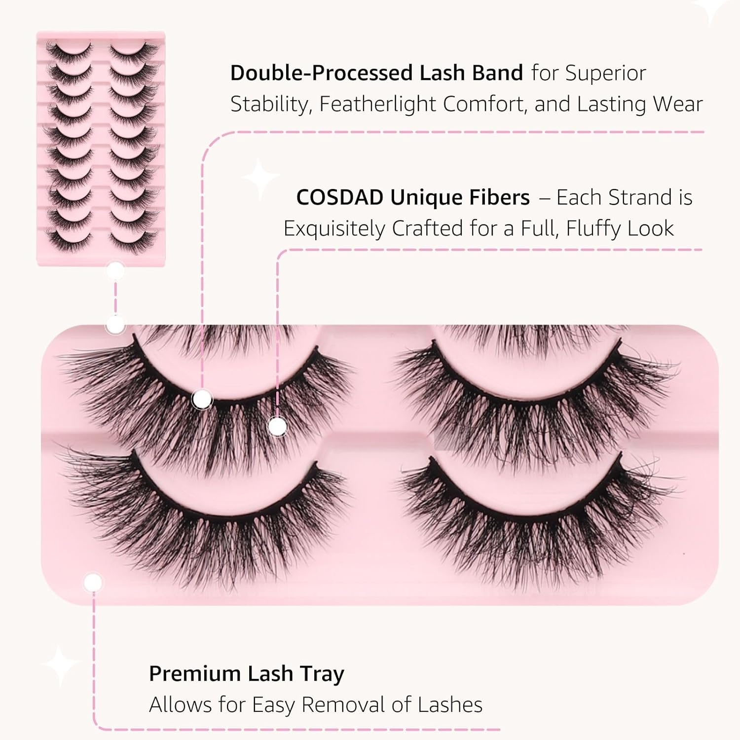 Cat Eye False Eyelashes – Natural Look, Wispy & Lightweight Glue-On Lashes, Reusable Fake Eyelashes for Everyday & Party Makeup (10 Pairs)