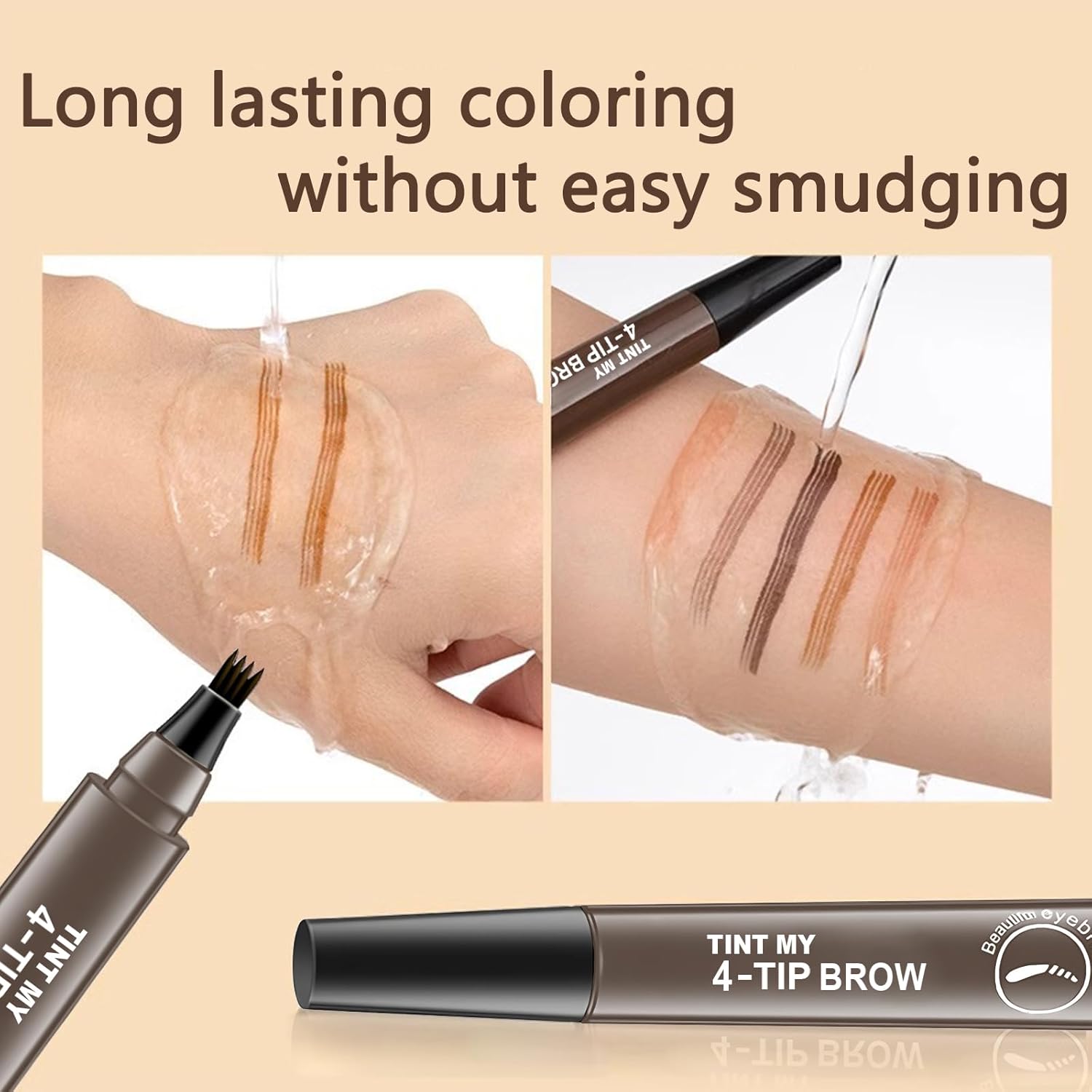 - Unique four Fork pen tip: Combing eyebrow shapes with distinct roots, resembling natural eyebrows, rich liquid coloring formula, long-lasting and natural makeup effect.