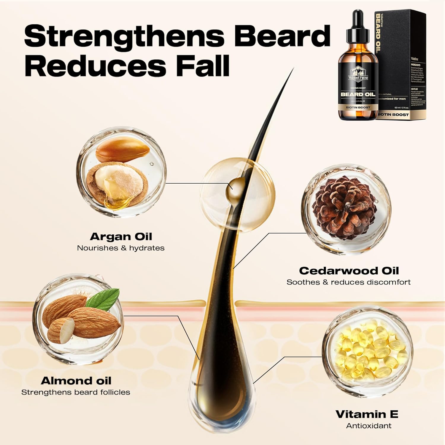 - Cedarwood Beard Hydration: Waking Forest Cedarwood Beard Oil is your top choice for moisturizing coarse facial hair and alleviating dry skin. This cedarwood-infused beard oil softens the texture of your beard, eases dryness, and ensures your beard stays smooth, lustrous, and healthy-looking throughout the day.